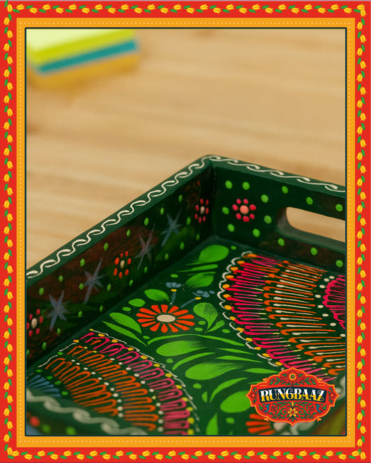 "Tray with Rickshaw Art Hand-Painted Truck Art Tray | Vibrant & Functional"